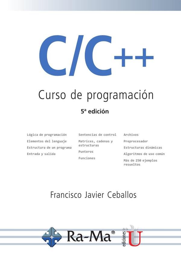 C es uno de los lenguajes de programación más populares. Permite realizar una programación estructurada sin límite a la creatividad del programador; además, los compiladores C tienen la ventaja de producir programas reducidos y muy rápidos en su ejecución. Por ello, muchos paquetes de software están escritos en C.Puesto que C++ fue desarrollado a partir del lenguaje de programación C, con pocas excepciones incluye a C, de ahí el título de este libro. Esta parte de C incluida en C++ es conocida como C– y podría compilarse como C++ sin problemas. No obstante, cuando se utiliza C++ para lo que fue pensado, esto es, para realizar una programación orientada a objetos, los conocimientos nuevos que hay que adquirir son cuantiosos.Este libro es el primero de una colección de tres:C/C++: Curso de programaciónProgramación orientada a objetos con C++Enciclopedia de C++que cubren el camino que hay que recorrer para llegar a desarrollar aplicaciones orientadas a objetos. El libro tercero incluye a los dos anteriores pero con un nuevo enfoque, ya que está basado exclusivamente en la biblioteca de C++.C/C++: Curso de programación es un libro:Totalmente actualizado al estándar ISO/IEC 9899:2011, relativo al lenguaje Cestándar (C11).Con ejemplos claros y sencillos, fáciles de entender, que ilustran los fundamentos dela programación C.Que le permitirá aprender lógica de programación.Que le enseñará a trabajar con estructuras estáticas y dinámicas de datos y con archivos, y a utilizar algoritmos de uso común.Con el que adquirirá unos elevados conocimientos en esta materia.Con el que aprenderá a desarrollar aplicaciones.Y con el que adquirirá la base necesaria para pasar a la programación orientada aobjetos con C++.Incluye material adicional con todos los ejemplos realizados y con los URL del software necesario para que el lector pueda reproducirlos durante el estudio.